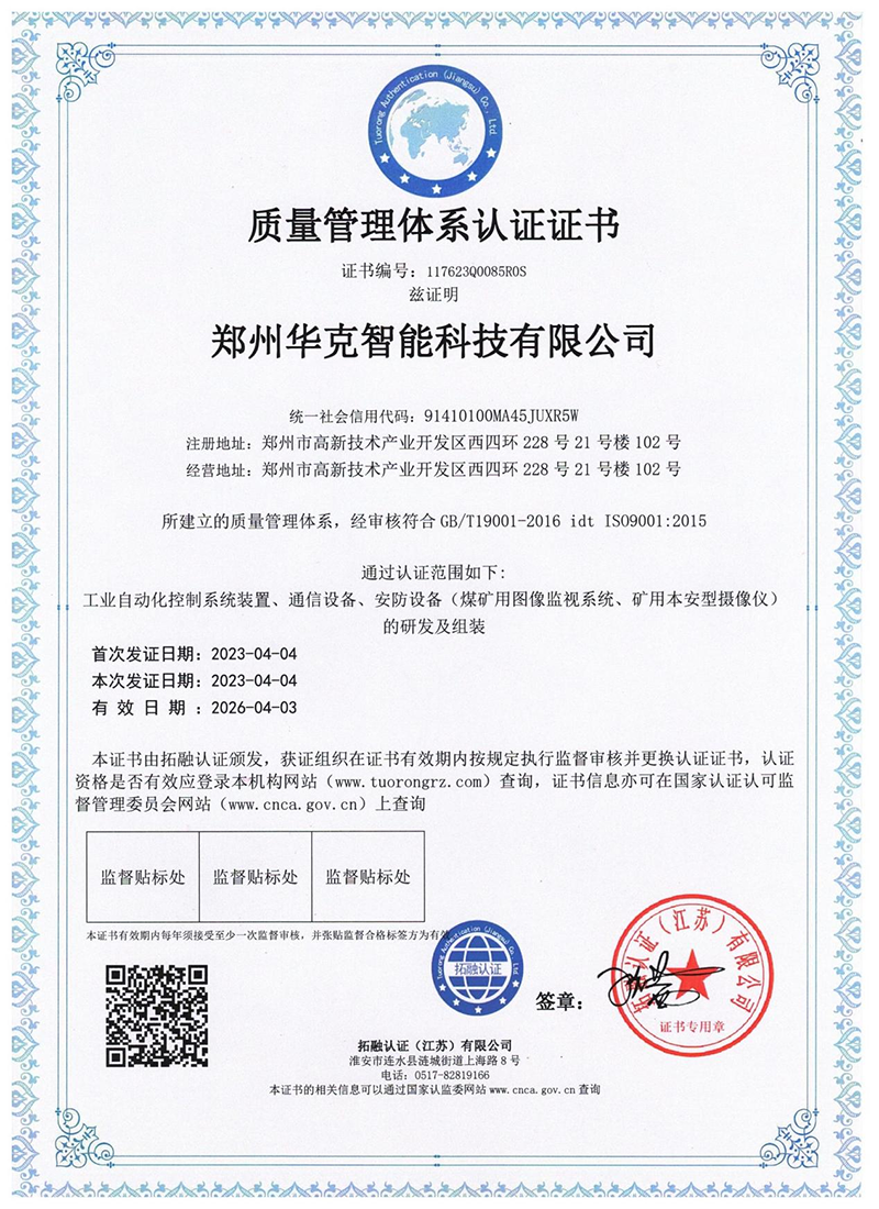 鄭州華克智能科技有限公司是集科研開(kāi)發(fā)、工程設(shè)計(jì)、加工制造、系統(tǒng)集成和工程安裝、服務(wù)于一體的新型智能礦山安全裝備制造企業(yè)。我們專注于煤礦自動(dòng)化、信息化產(chǎn)品的研發(fā)、生產(chǎn)、銷售和服務(wù),致力于成為掌握核心技術(shù)的高端安全裝備研發(fā)、制造企業(yè)。